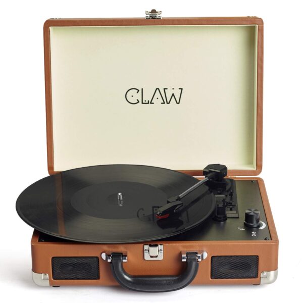 CLAW Stag Portable Vinyl Record Player Turntable with Built-in Stereo Speakers (Brown)