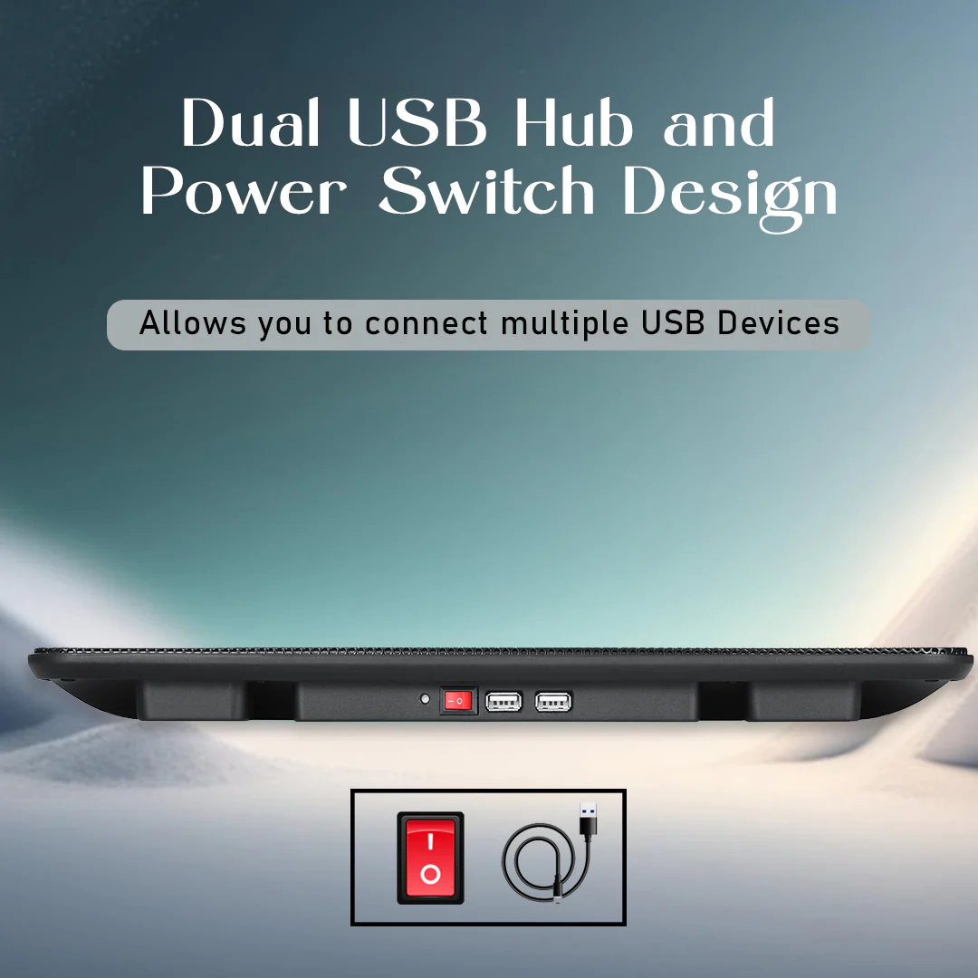 - LED Indication: The LED light is present near the on/off switch and in the three fans which indicates the working status of the cooling pad.