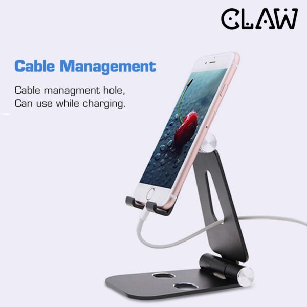CLAW Mobile Phone Tablet Stand Holder, Fully Foldable & Adjustable Cradle Dock Compatible with All iPhone & Android Phones, iPads, Tablets and Smartphones, Aluminium Alloy (Silver)
