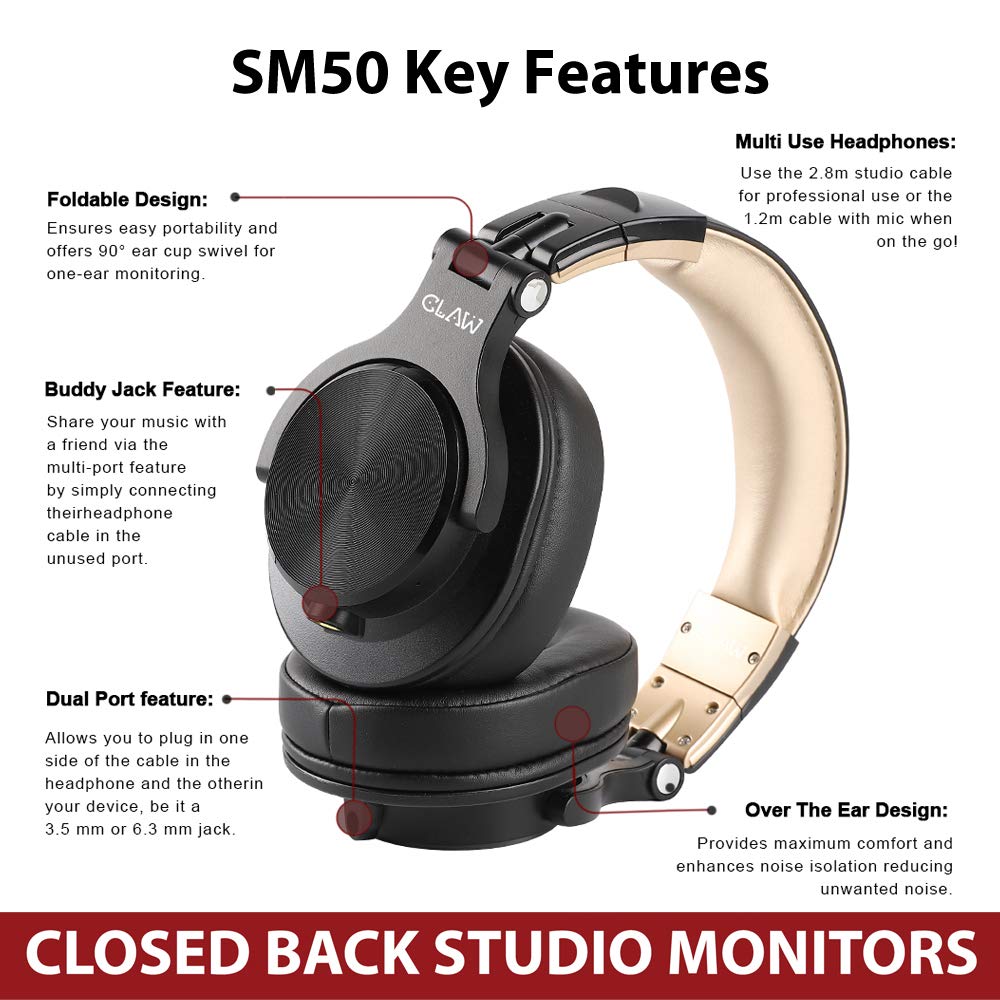 CLAW SM50 Professional Studio Monitoring DJ Headphone Information
