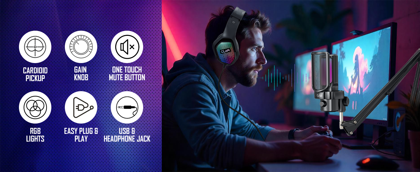- 🎤 Easy Plug-and-Play Setup: The Claw GM17 Kit microphone kit offers true plug-and-play convenience—simply connect it to your PC, MacBook, PS4/PS5, laptop, tablet, or smartphone using the included Type-A/Type-C to USB- Type-C cable. No drivers or installations required. The 2-metre cable ensures flexible positioning, making it ideal for desktop gaming and recording setups.