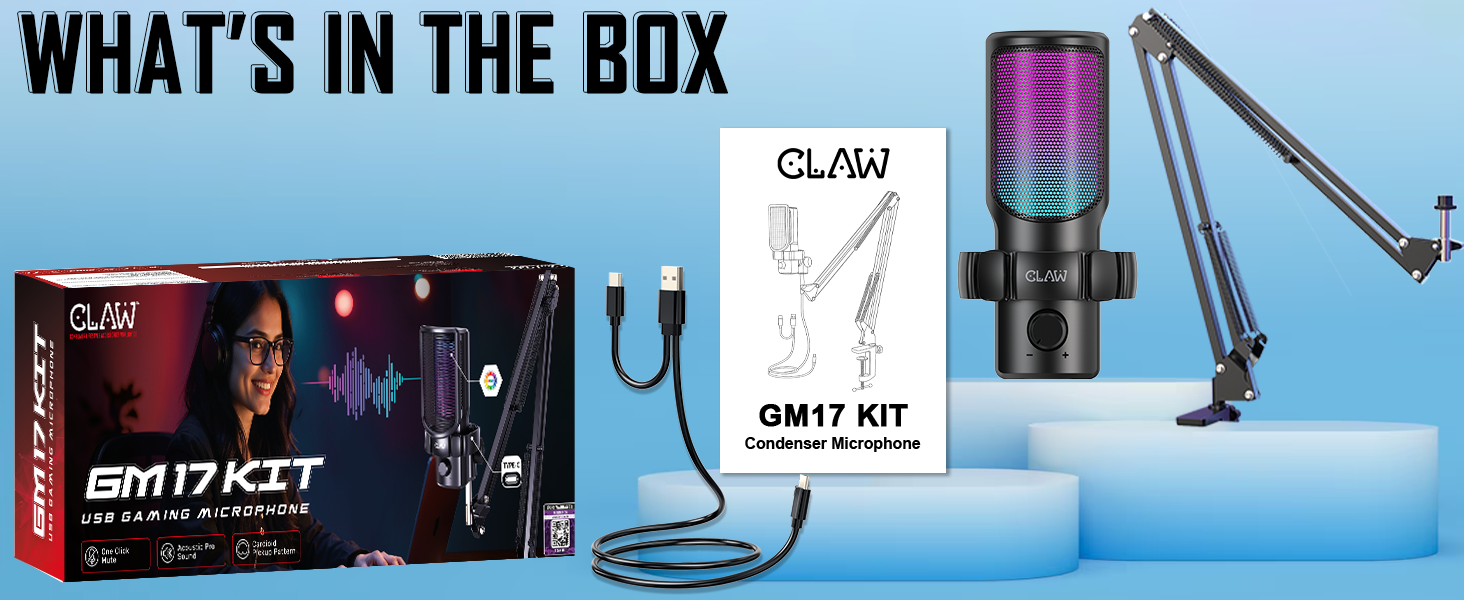 - 🎧 Live Monitoring for Pro-Level Recording: With a dedicated headphone jack for real-time monitoring, the Claw GM17 Kit lets you hear your voice as you speak—helping to avoid audio delay, echo, or mismatched volume. Ideal for live sessions, collaborative games, and studio-quality recordings.