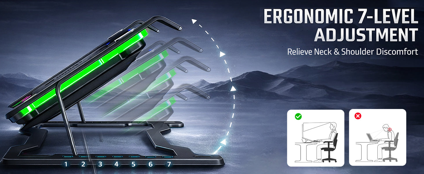 - Adjustable Ergonomic Stand with 7 Height Levels: The stand supports 7 levels of height adjustment, helping users achieve a perfect ergonomic typing and viewing angle—reducing neck and wrist strain during long work or gaming sessions. The angle can be adjusted by repositioning the support rod.