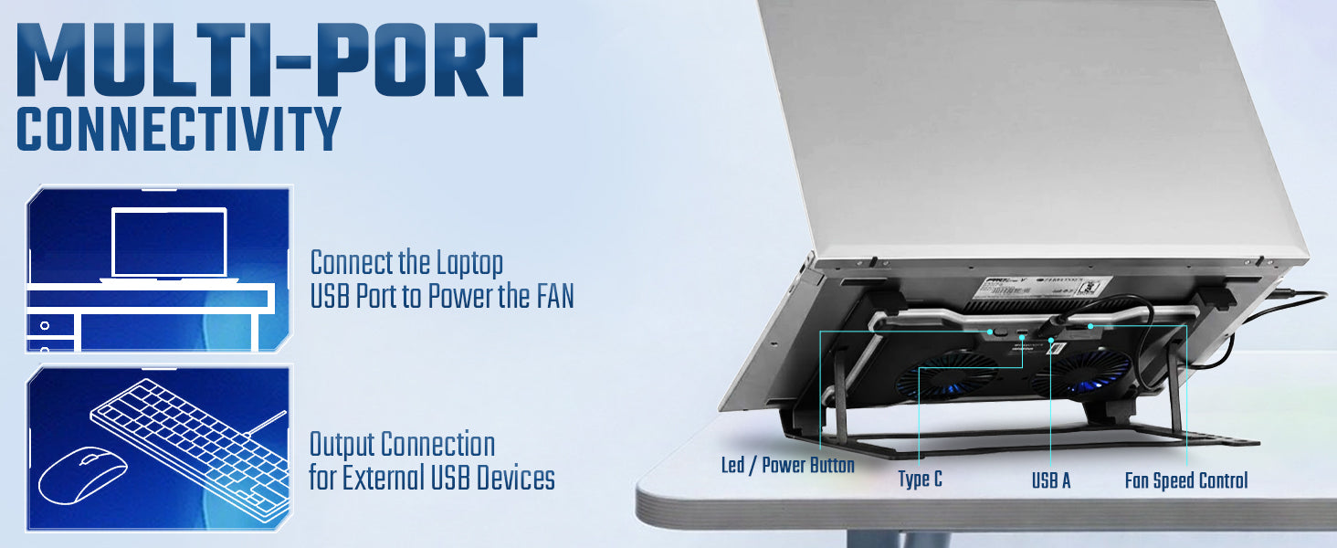 - High-Performance Dual Cooling Fans (3000±10% RPM): Equipped with two powerful 65×65×15mm cooling fans running at 3000 RPM, the Hyper Lift X2 delivers enhanced heat dissipation for gaming laptops, office laptops, and creator workstations. The back switch allows easy rotation speed control.