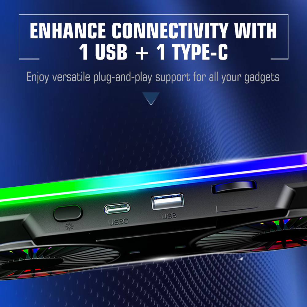 Hyperlift X2 – 2 Motor RGB Laptop Cooling Pad with 1 USB and 1 Type-C Port with Adjustable Height