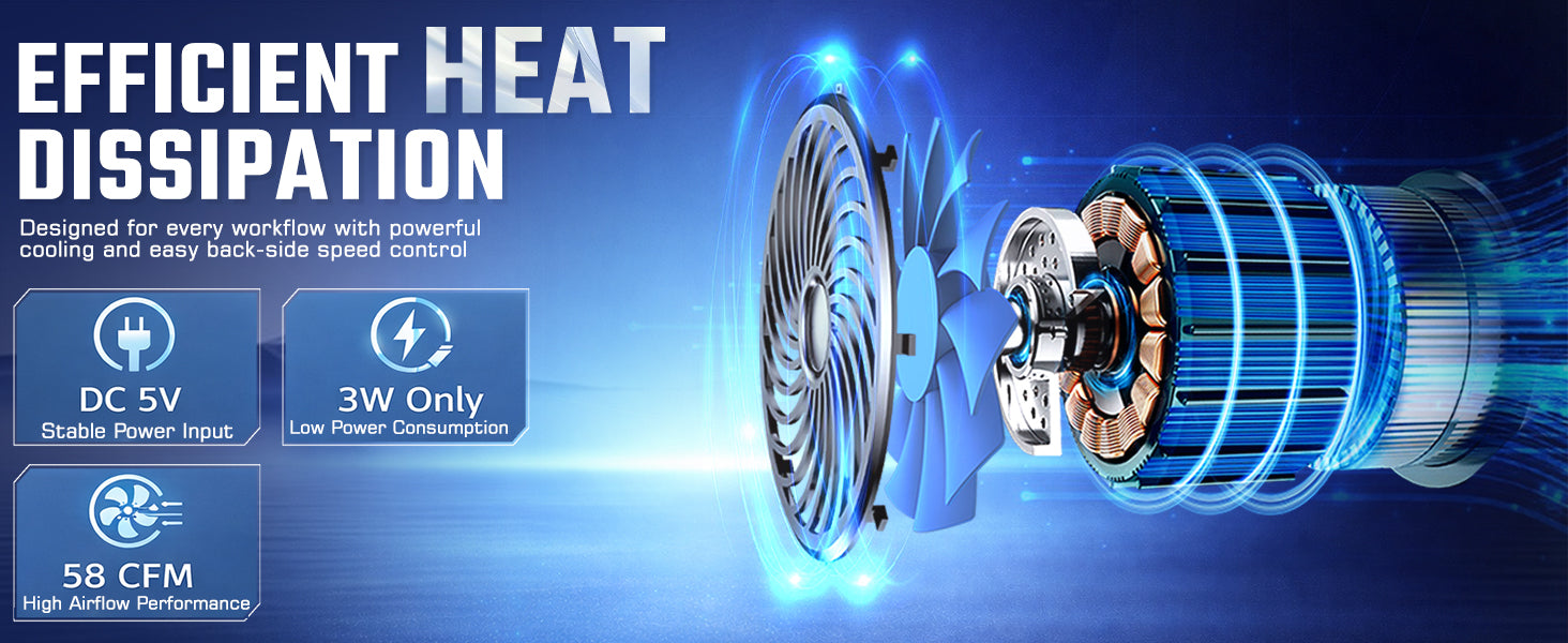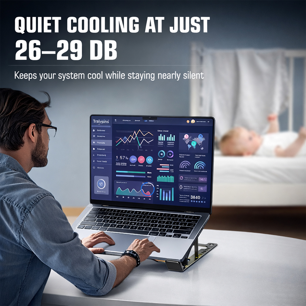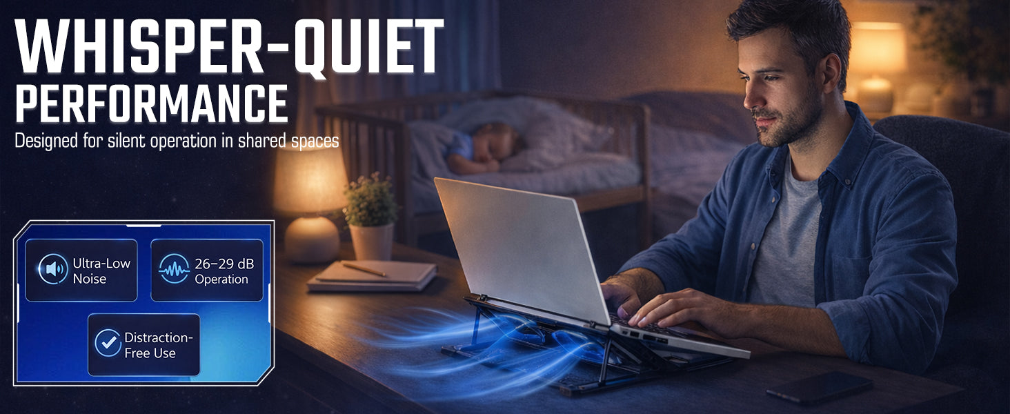- Ultra-Quiet Cooling with Low Power Consumption: Operating at a quiet 26–29 dB, the Hyper Lift X2 keeps your laptop cool without disturbing your workflow. It runs on DC 5V, consumes just 3W, and delivers 58CFM airflow for efficient cooling throughout extended use.