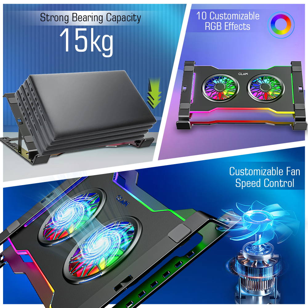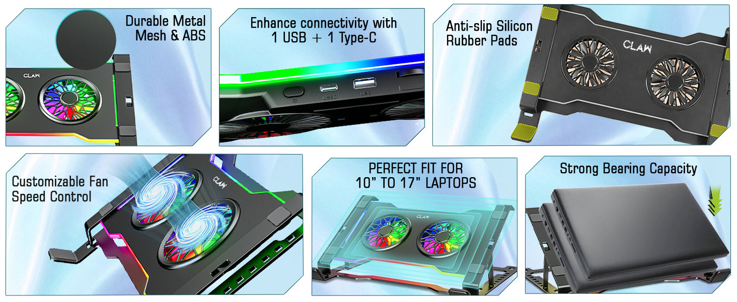 - Strong Build Quality & High Load Capacity: Made from durable Metal + ABS plastic, this cooling stand supports up to 15kg, making it suitable even for heavier 17-inch gaming laptops. Its compact yet sturdy design ensures stability during use.
