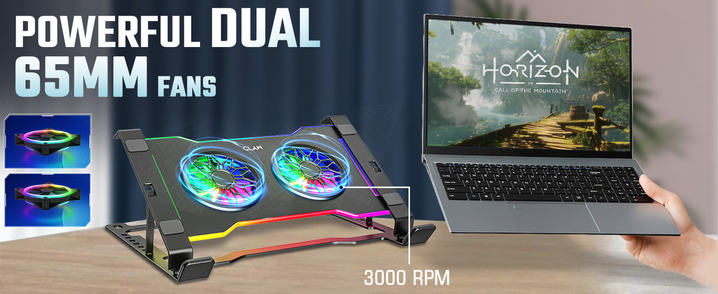 - High-Performance Dual Cooling Fans (3000±10% RPM): Equipped with two powerful 65×65×15mm cooling fans running at 3000 RPM, the Hyper Lift X2 delivers enhanced heat dissipation for gaming laptops, office laptops, and creator workstations. The back switch allows easy rotation speed control.