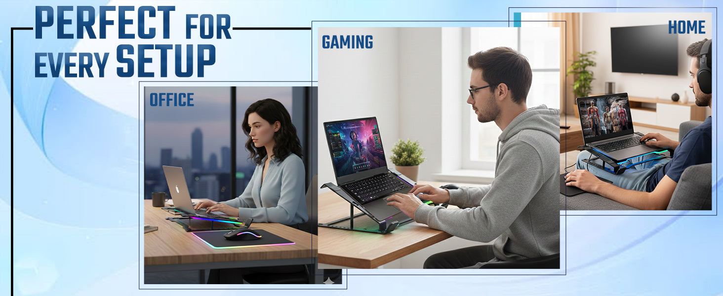 - Adjustable Ergonomic Stand with 7 Height Levels: The stand supports 7 levels of height adjustment, helping users achieve a perfect ergonomic typing and viewing angle—reducing neck and wrist strain during long work or gaming sessions. The angle can be adjusted by repositioning the support rod.