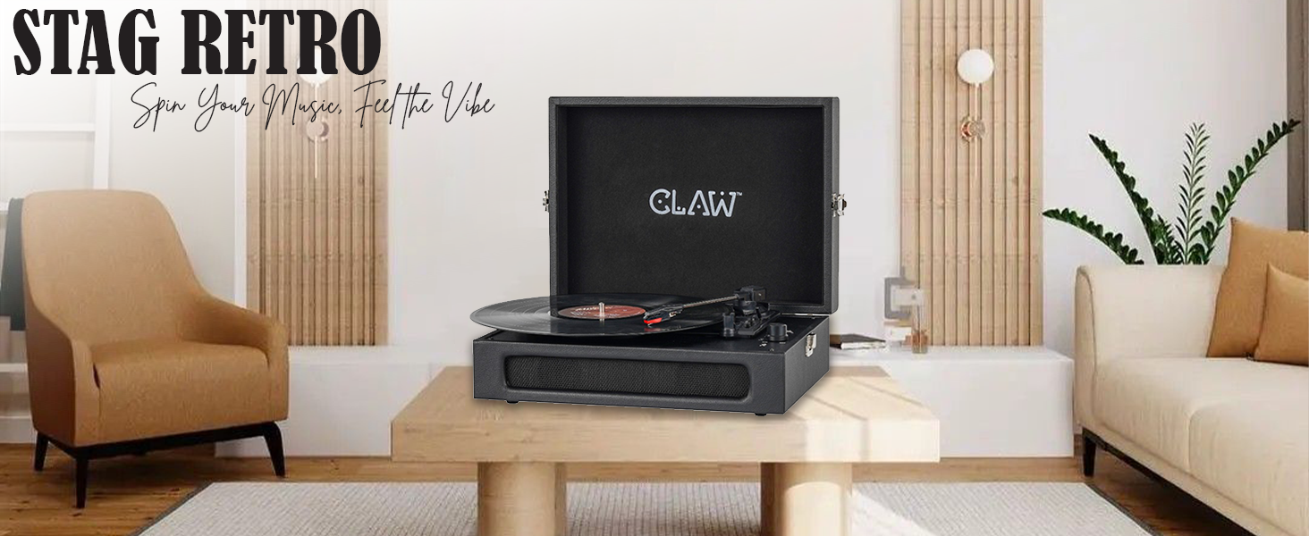 Stag Retro – Bluetooth Turntable with Built-In Stereo Speaker, USB Recording and Play Buttons (Black)