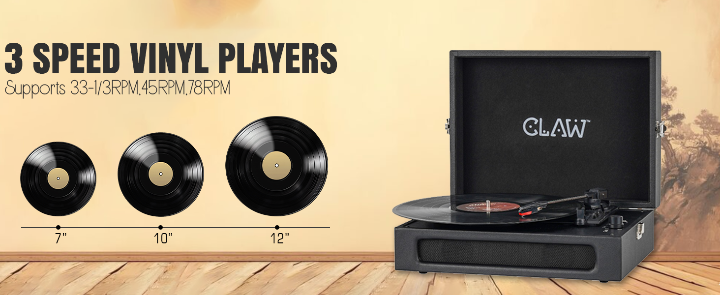 - 📀 3-Speed Turntable (33 / 45 / 78 RPM): Supports all three standard vinyl speeds—33⅓, 45, and 78 RPM—making it compatible with 7″, 10″, and 12″ records. Switch speeds easily to suit your vinyl collection and enjoy classic playback.
