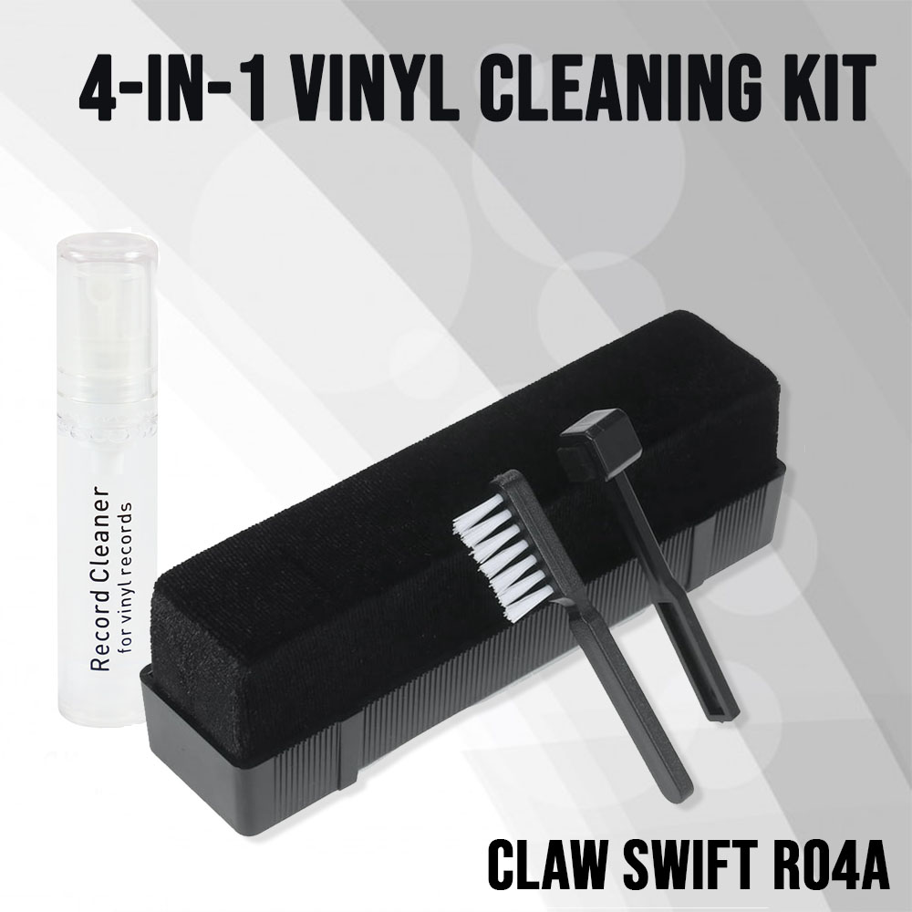 - 4-in-1 Vinyl Cleaning Kit: CLAW Swift R04A includes premium quality Velvet Cleaning Brush, Small Toothbrush, Carbon Fiber Stylus Brush and 10ML liquid solution to keep your turntable or vinyl record player as good as new forever while preserving the original sound quality of the record.